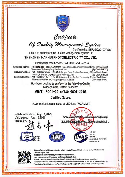 Untuk mengontrol kualitas produksi lensa LED dengan lebih baik, kami telah membangun sistem manajemen mutu yang lengkap.Pengendalian proses produksi, pemeriksaan proses dan pengujian, dan penerimaan produk jadi. pada saat yang sama, kami juga telah memperkenalkan konsep dan metode perbaikan berkelanjutan untuk mendorong karyawan untuk menemukan,mengangkat dan memecahkan masalah selama proses produksiMelalui pelaksanaan langkah-langkah ini, kami dapat dengan cepat menemukan dan menyelesaikan masalah dalam proses produksi dan terus meningkatkan efisiensi produksi dan kualitas produk kami.